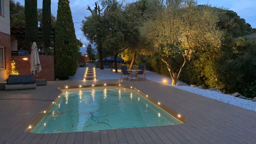 Disfrutamos creando ambientes nocturnos para ensalzar la vegetación y provocar sensaciones agradables.